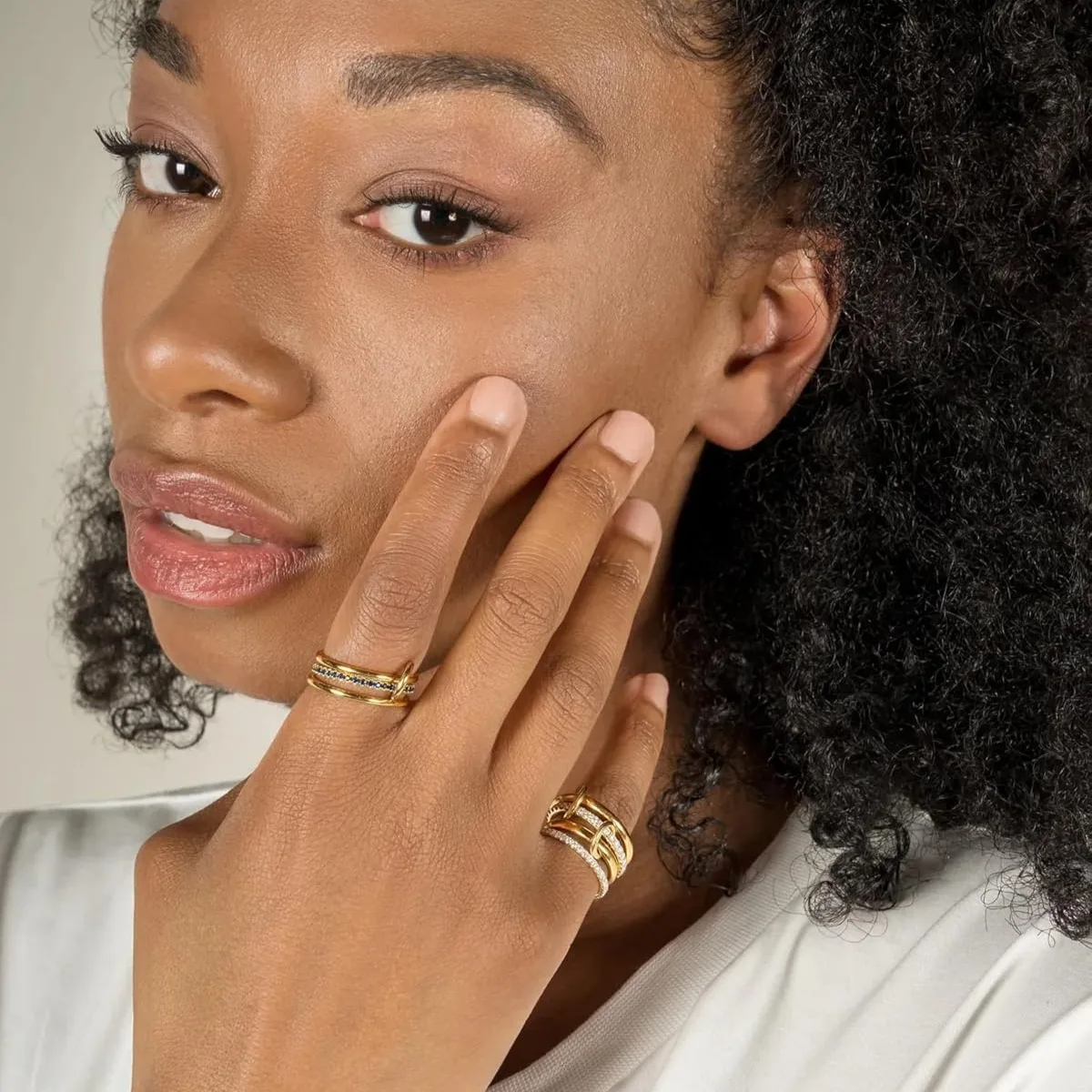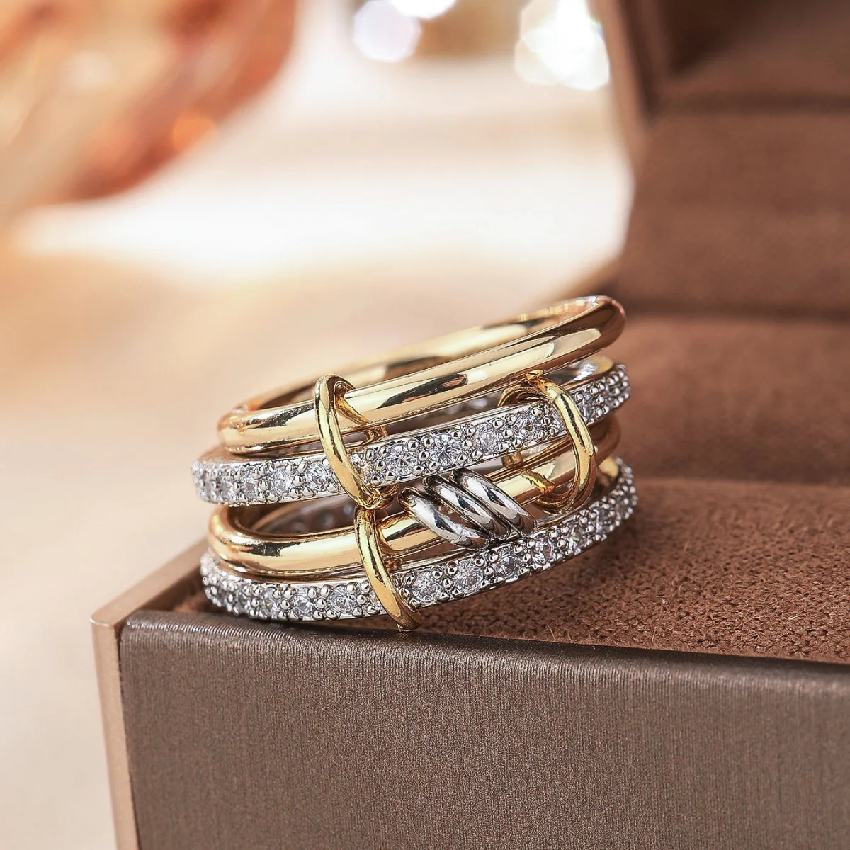 A Niche Two-Color Four-Ring Copper Jewelry Ring, Hypoallergenic, Ins Style, Stacking Artifact, Suitable For Young Women